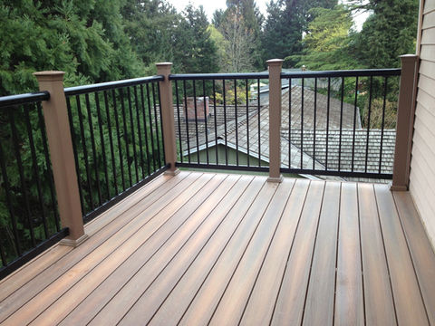 What is Composite Decking? Plastic and wood fibers are mixed together and melted to create a decking material. Deckorators brand offers a premium grade PVC & limestone composition, separating it from its competitors. Composite combines the best features of each material; plastic keeps moisture out of the wood, and wood helps control the contraction and expansion of the plastic. Composite Decking never needs painting, staining or sealing. It will never warp, split, rot or peel. It is splinter free and in most cases slip resistant.